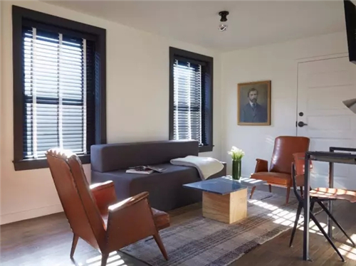 盡管是美國羅德島州的首府,小城普羅維登斯卻往往因為布朗大學、羅德島設計學院等著名學府而受到關注。由Ash NYC事務所操刀設計的Dean酒店就是誕生在這個枝繁葉茂的城市之中,充滿美國舊式學院風,迅速成為人們頻繁駐足光顧的時髦酒店新寵。但有意思的是,酒店建筑的歷史卻一點也不學院。它原本是一棟建于1912年的教會房屋,后被改造成一家脫衣舞俱樂部,有過很長一段燈紅酒綠的時光。這些歷史痕跡現在仍然能夠從大廳里的馬克地板、走廊上的霓虹燈牌看出來,都是設計團隊的刻意保留。房間的設計上,Ash NYC從極富個性的歐洲精品酒店那里獲取靈感。潔白的墻面、利落的線條,顯得冷靜與節制。空間規劃受湖邊營地和單間校舍的啟發,混合搭配了Hudson Bay毛毯、手工定制家具和簡斂的肖像油畫,即便是面積最小的上下鋪客房,也搭配了家具設計大師Jean Prouvé的桌椅。