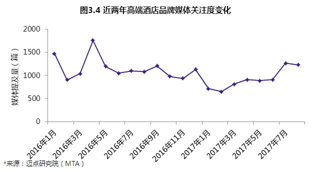 近兩年國內媒體對酒店業的關注整體偏低,而相對最受媒體關注的高端酒店品牌也并沒有突出表現。酒店業是相對垂直的領域,因此關注的媒體也多僅限于行業專業媒體上。