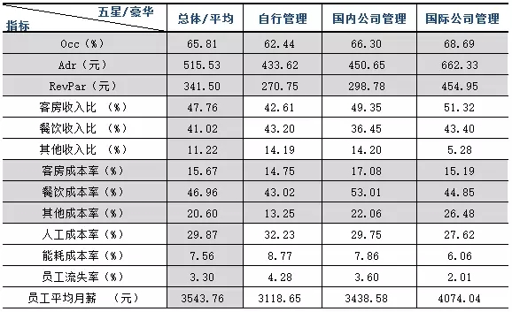 二:不同管理方式的豪華型飯店統(tǒng)計(jì)