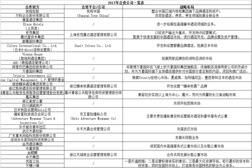 據了解,今年在酒店、公寓、聯合辦公領域,大型集團搭建的合資公司至少16家。這些新成立的合資公司,依靠合作雙方的固有優勢,或強強聯合集中某一定向業務的開發或者拓展,或是為了自身品牌進入新市場、擴大市場占有率,或是為了進入一個自己未涉足的全新領域,形成品牌互推、資源互補。