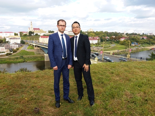 格羅德諾副市長(zhǎng)安德烈向東呈酒店集團(tuán)副總裁趙俊濤推介項(xiàng)目時(shí)合影
