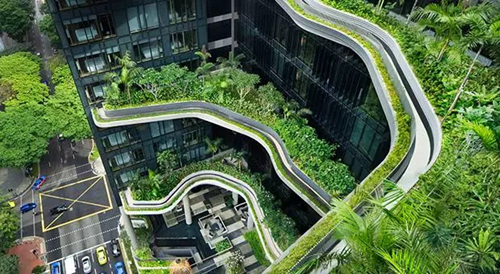 這座“花園酒店”擁有面積約15,000平米的繁茂園林、瀑布和花墻,是酒店總占地面積的兩倍以上。通過(guò)太陽(yáng)能電池供電的新加坡首批零耗能空中花園。采用綜合性節(jié)能節(jié)水措施,例如使用光線、雨水和動(dòng)作感應(yīng)器,以及集雨和NEWater(回收水)。