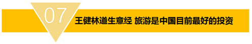 9月8日,萬達(dá)集團董事長王健林在2016廈門國際投資洽談會上發(fā)表演講,稱旅游是最好的投資之一,并給出了五個理由。第一,旅游投資是國家的產(chǎn)業(yè)方向,第二,旅游是最長壽的投資,第三,旅游是最環(huán)保的投資,第四,旅游是能發(fā)財?shù)耐顿Y,第五,旅游是最富民的投資。