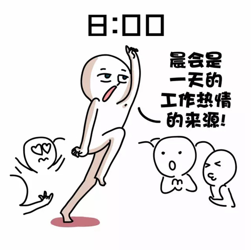 上戰(zhàn)場(chǎng)前,需要知己知彼。早會(huì)上,你匯報(bào)昨天的工作情況,安排今天的工作,最后,領(lǐng)導(dǎo)會(huì)給你帶來(lái)一碗雞湯,成為一天的工作熱情的來(lái)源。