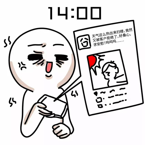 為了訂單,頂著烈日拜訪(fǎng)客戶(hù),隨時(shí)準(zhǔn)備被拒絕。不忘發(fā)個(gè)朋友圈讓老板和同事看到。