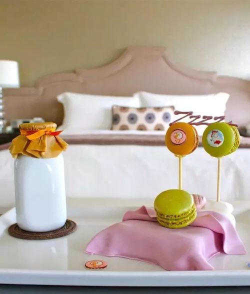 拿巧克力、馬卡龍作為夜床禮物的酒店不在少數(shù),尤其是用巧克力制作當(dāng)?shù)孛麆俟袍E造型。不過大半夜的拿甜食誘人實在心塞。