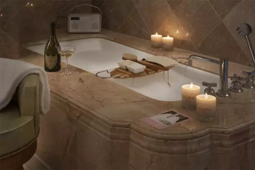 浴室的百葉窗落下,以保證浴室和臥室的光源不會相互干擾;甚至有夜床服務(wù)是在浴缸邊點上蠟燭,毛巾鋪在浴缸邊,隨時歡迎客人沐浴;可堪玩味的是對于被子的要求,有些酒店只是做基礎(chǔ)的整理,收掉床褀和多余的靠墊,有些酒店的做法是被子折角45度,或者整面平行往外翻約60cm,幫客人營造晚安入睡的前奏。