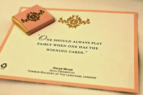 天津利順德大飯店始建于1863年,曾經(jīng)接待過眾多全球領(lǐng)導(dǎo)人并見證過許多標(biāo)志性的活動,因其引以為傲的歷史被稱為“外交酒店”。酒店的夜床禮物是將飯店一百五十余年歷史融入其中的紀(jì)念版明信片或下榻過酒店的孫中山、胡佛、張學(xué)良,梅蘭芳等歷史名人紀(jì)念書簽。每天一張不同的明信片或歷史名人書簽,幸運的客人會集齊一套。