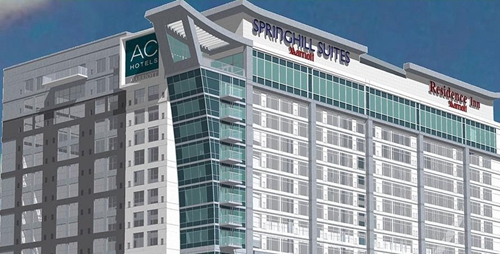 (萬豪國際在美國田納西州首家開創性復合酒店Triple-Branded Property,同一建筑包含萬豪旗下的三個品牌酒店:Autograph Collection,SpringHill Suites以及Residence Inn)