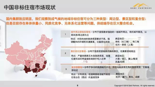 這是自己做的,我們的一些看法不一定對(duì),我們把它大概分成了三種,周邊、景區(qū)和復(fù)合型,我們覺(jué)得整個(gè)非標(biāo)住宿的單體體量是比較小的,杭州是非常典型的一塊。我們認(rèn)為整個(gè)民宿端、供給端有巨大整合的機(jī)會(huì)。