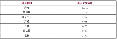 酒店房券銷售榜單