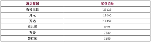 酒店餐券銷售榜單