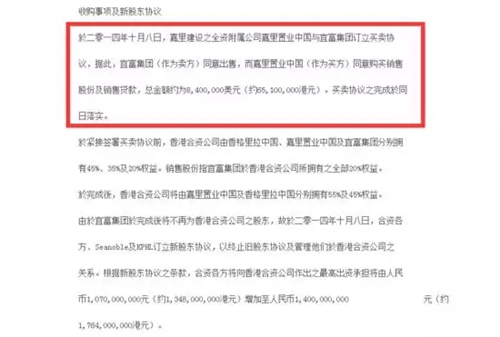 2014年10月8日,宜富集團(tuán)退出昆明香格里拉大酒店項(xiàng)目,嘉里建設(shè)發(fā)布公告,公告顯示嘉里建設(shè)全資附屬公司嘉里置業(yè)(中國(guó))有限公司與宜富集團(tuán)簽訂買賣協(xié)議,以總額約840萬美元(約6510萬港元)收購(gòu)宜富集團(tuán)持有香格里拉國(guó)際飯店(昆明)有限公司的20%股權(quán)。交易完成后,香格里拉國(guó)際飯店(昆明)有限公司將僅由嘉里置業(yè)(中國(guó))及香格里拉中國(guó)兩家控股,其中,嘉里置業(yè)占股從35%增加至55%,成為香格里拉國(guó)際飯店(昆明)有限公司最大的股東。