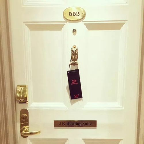 J.K. 羅琳住的552房間,現在已改名為“J.K.羅琳套間”,門上更是有一個可愛的貓頭鷹小標志。房間內的家具也一直沒有換,這也就意味著,J.K. 羅琳寫作時所用的桌子和椅子,現在還在房間內擺放著。你入住的時候,可別忘來一個“原景重現” 喲!