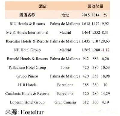 除了提高連鎖酒店的形式以及擴(kuò)大客房數(shù)量以外,酒店集團(tuán)的利潤(rùn)收入數(shù)據(jù)變化量也同樣可以非常重要, 以下是西班牙根據(jù)收入水平排名前10的酒店集團(tuán).
