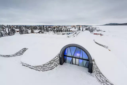 Icehotel 是世界上第一個冰屋酒店,時間可以追溯到 1989 年。優卡司亞維(Jukkasjärvi)的夏天很熱鬧,這里會舉辦很多活動,吸引了不少游客。但是冬天卻寒冷又漫長。 Yngve Bergqvist 受到日本傳統冰雕的啟發,在兩個專業的日本冰雕師的指導下,請來了一些藝術家在這里舉辦冰雕的 workshop。第二年冬天,一個 60 m² 的圓頂冰雪建筑 ARTic Hall 建成了。一開始只是用來做藝術畫廊、教堂祈禱室和電影展示。Bergqvist 和合作伙伴也在里面開酒吧。ARTic Hall 面積逐年擴大,其建造技術在瑞典和挪威申請了專利。