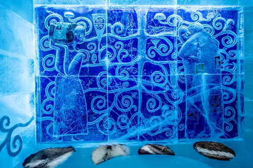 又到了瑞典那家冰酒店一年一度開張迎客的日子。 每年這個酒店都會邀請來自全球各地的多位藝術家利用冰和雪,為酒店設計有趣的房間和功能區。今年也不例外,動物主題的、奢華主題的、藝術主題的房間都頗有吸引力。酒店里的冰酒吧也依舊是住客以及不住店游客必去“朝圣”的地方。