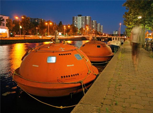 其實,這個奇怪的設備最初在1972年生產出來是為海上石油鉆井平臺配備的幸存者艙,內部的直徑也只有4.25米,除了基礎設施的配備,雖然內部會稍微修飾一下,但想來居住的體驗也不會非常愉快。關于安全性,艙門外面有外部鎖,所以盡管沿街而居住,也不用太擔心自身及物品的安全。荷蘭海牙的這個膠囊旅館作為短暫過夜的地方,偶爾通過小小的窗戶看下運河的風景還是非常美妙的。