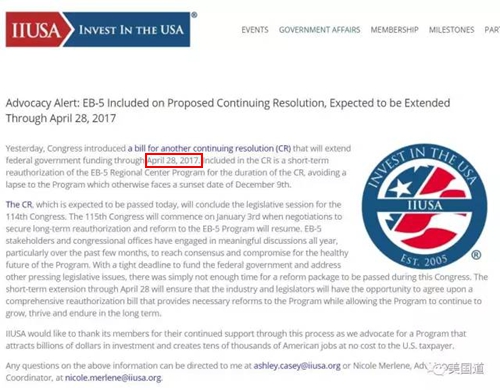 而就在美國時間12月7日,IIUSA的官方網站上已發布通告,正式確認EB-5現行法案已經包括進了持續決議案(CR-Continuing Resolution)的順風車,通過周五兩院的投票后,就將延期至2017年4月28日。新的法案可能會將最高投資要求從50萬美元提高到80萬美元(高失業率地區),從100萬美元提高到120萬美元(低失業率地區)。