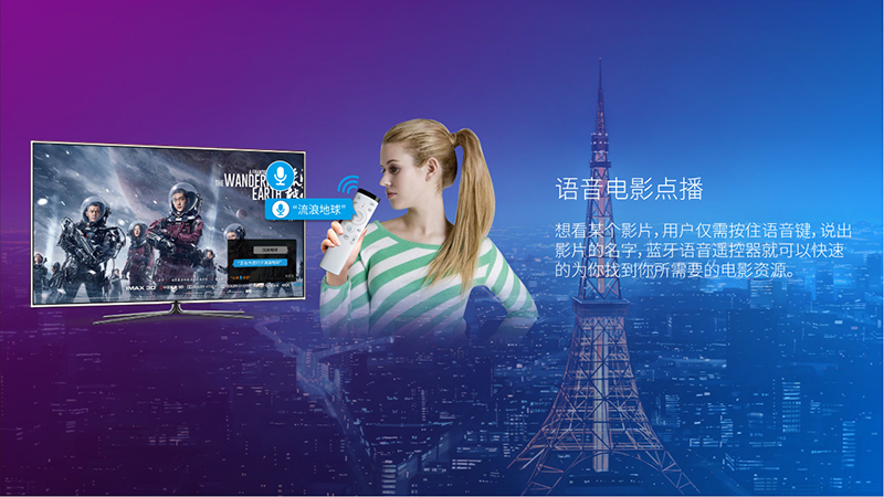 想看某個影片,用戶僅需按住語音鍵,說出影片的名字,藍牙語音遙控器就可以快速的為你找到你所需要的電影資源。只要電視里有的資源,它都可以即時的幫你播放,更加實用的一點是,語音遙控是貫穿全程的??措娨暱吹讲幌矚g的女二又賴在男主旁邊,就想趕緊快進:“快進幾分鐘”,馬上就可以跳過不需要的劇情,跟手動長按進度條快進相比,不知方便多少。聲音太輕要調大音量,或是暫停、退出,也全可通過語音遙控實現。輕松玩轉語音遙控后,看電視用遙控就變得非常輕松了。