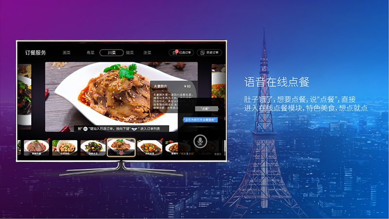 肚子餓了,想要點餐,說“點餐”,直接進入在線點餐模塊,特色美食,想點就點。